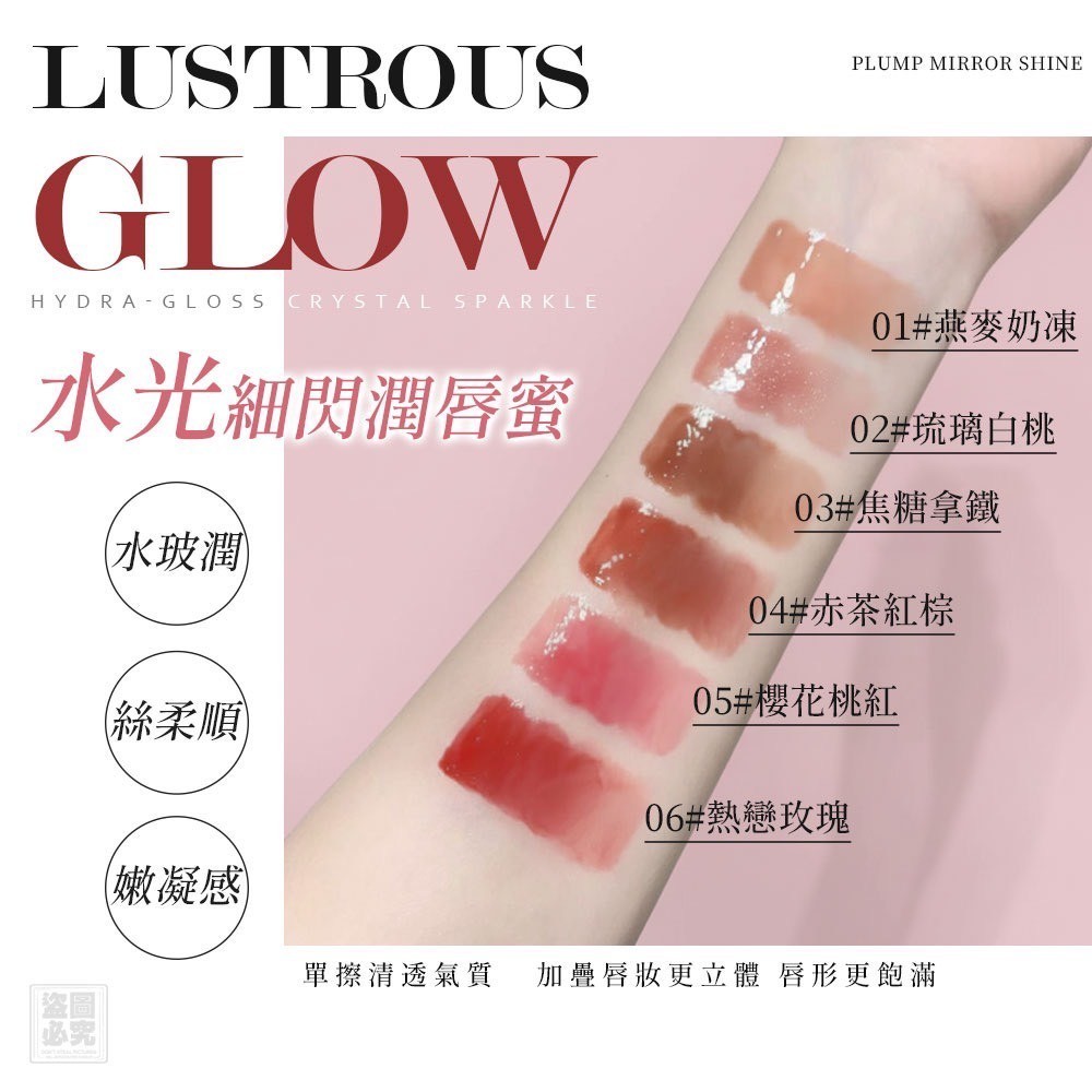清透水潤、微光閃亮、輕盈不黏