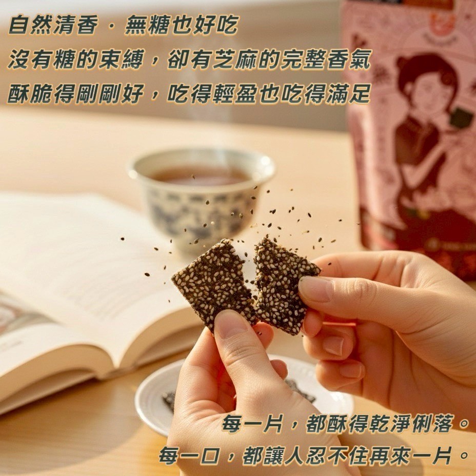 不加糖反而更能吃到芝麻本身的香甜,清爽不膩口,一片接一片停不下來~