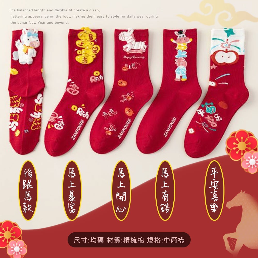 🧧 2026 新馬年 中筒襪5雙組