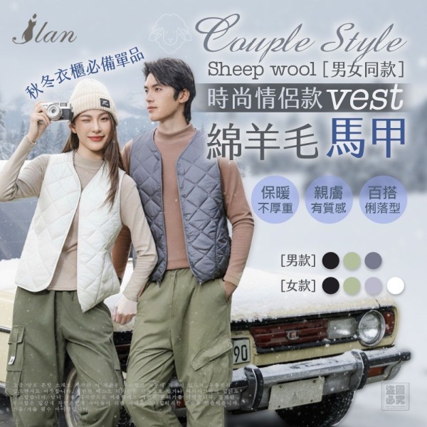 ❤️ILAN嚴選-時尚情侶款 綿羊毛馬甲