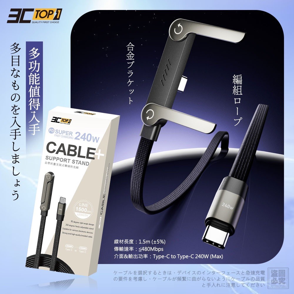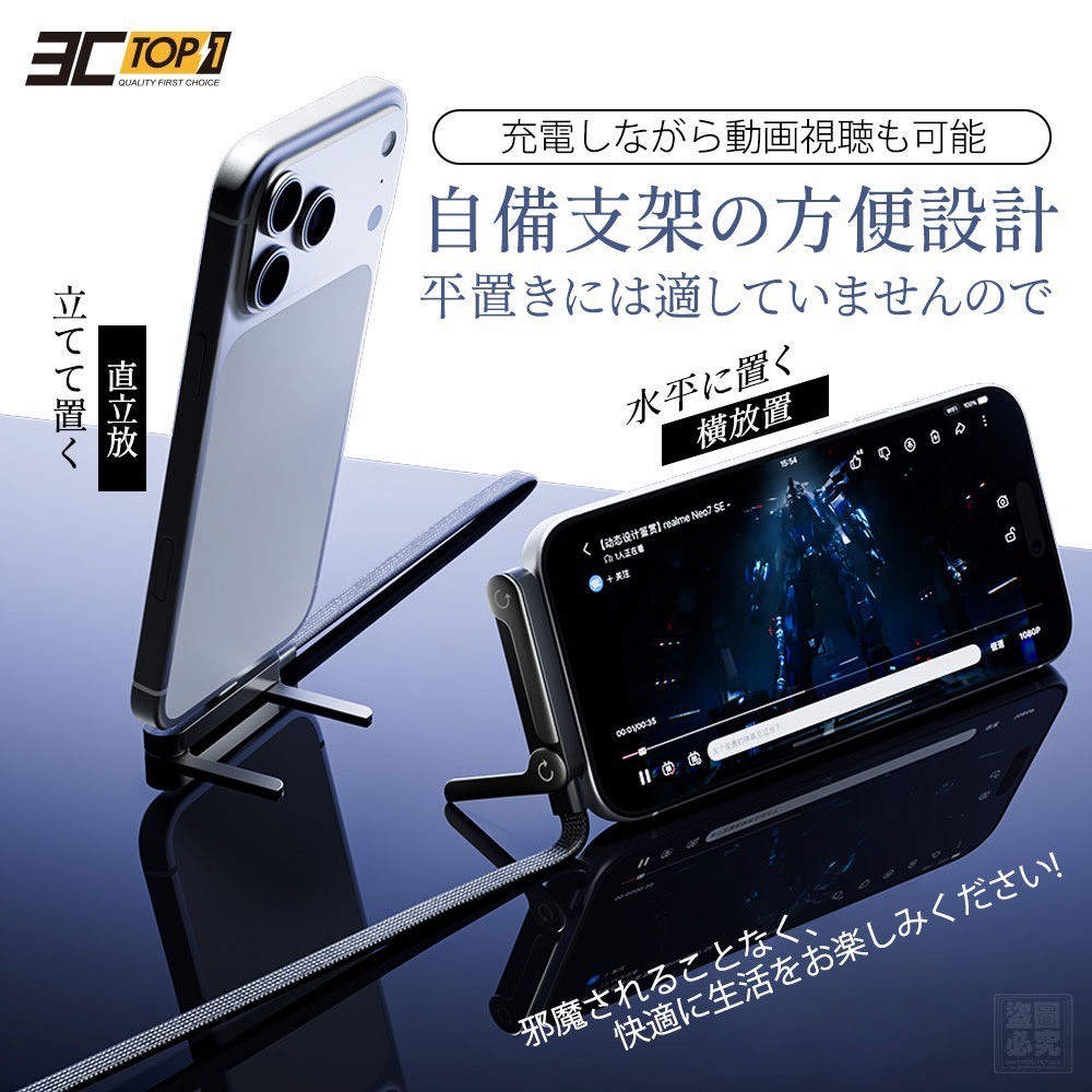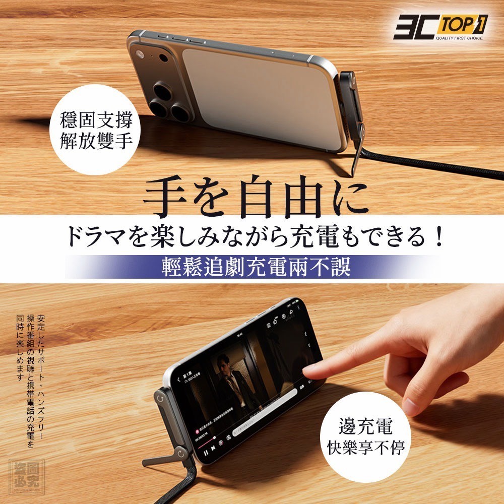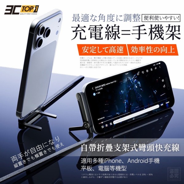 ❤️3C-Top1-自帶折疊支架式彎頭快充線