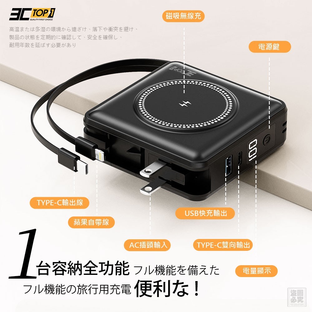 ❤️3C-TOP1 旅便快充磁吸行動電源