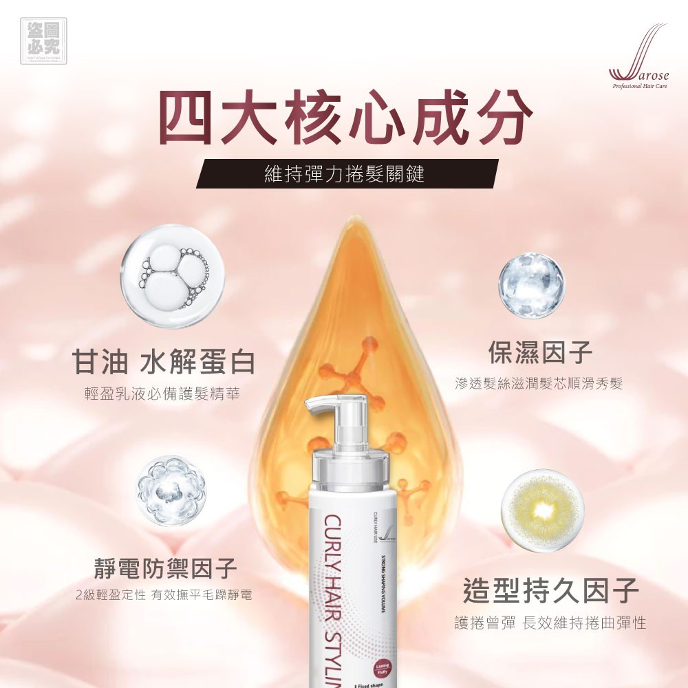 ✨含有甘油、水解蛋白、造型持久因子、核心成分達到修護+定型