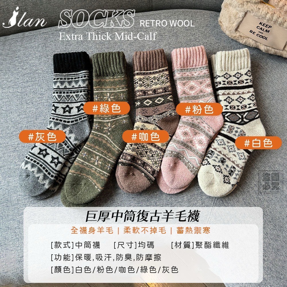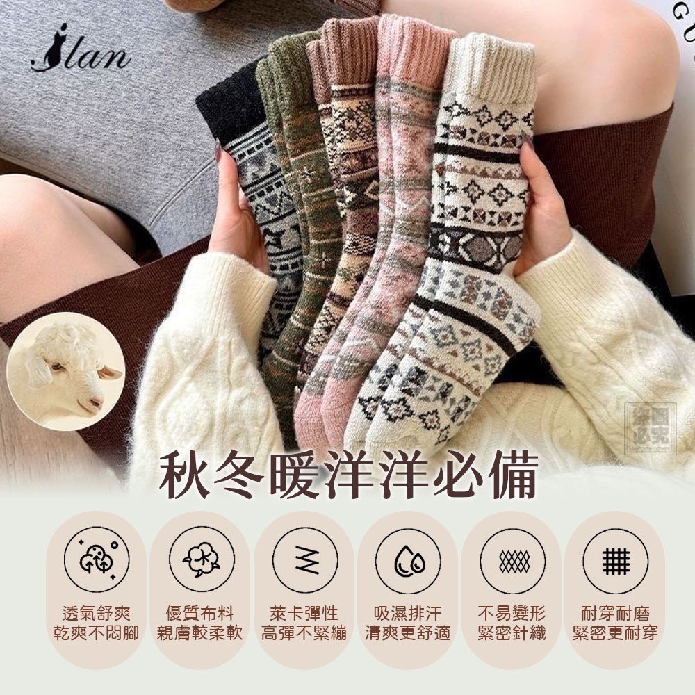 🔥ILAN嚴選-巨厚中筒復古羊毛襪5雙組