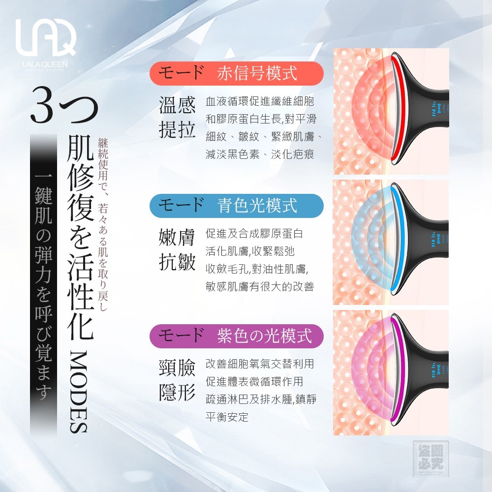2. LED光療功能:搭載特定波長的光學護膚科技,能有效改善膚色暗沉、撫平細微紋路,並促進膠原蛋白生成。持續使用,讓肌膚由內而外透出健康光采,告別蠟黃與疲態。