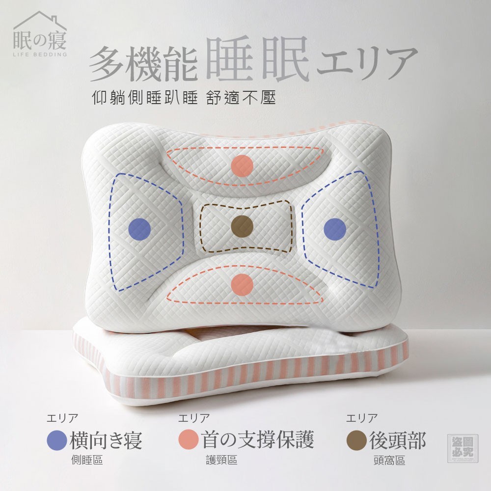 ✅ 分區支撐: 護頸區+頭窩區+側睡區,怎麼翻都好睡