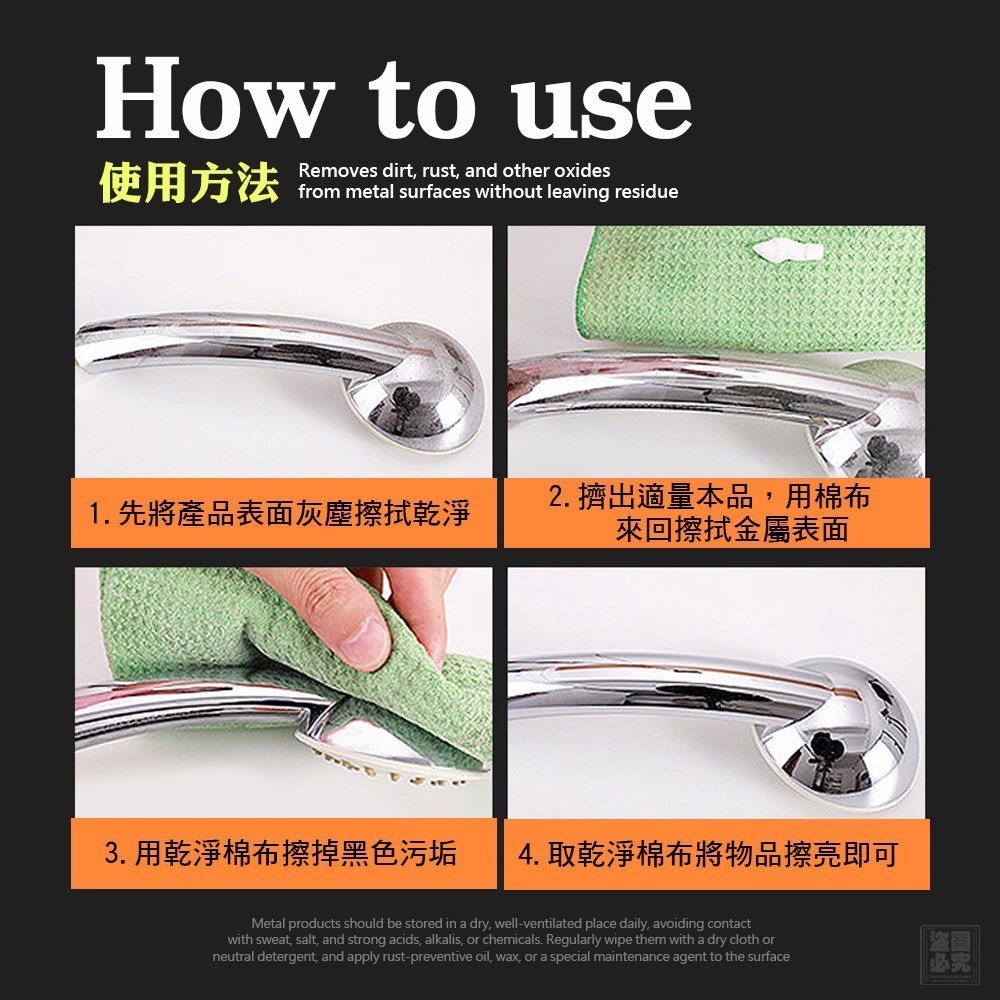 ② 擦拭:擠出適量拋光膏,用棉布在金屬表面來回反覆擦拭。