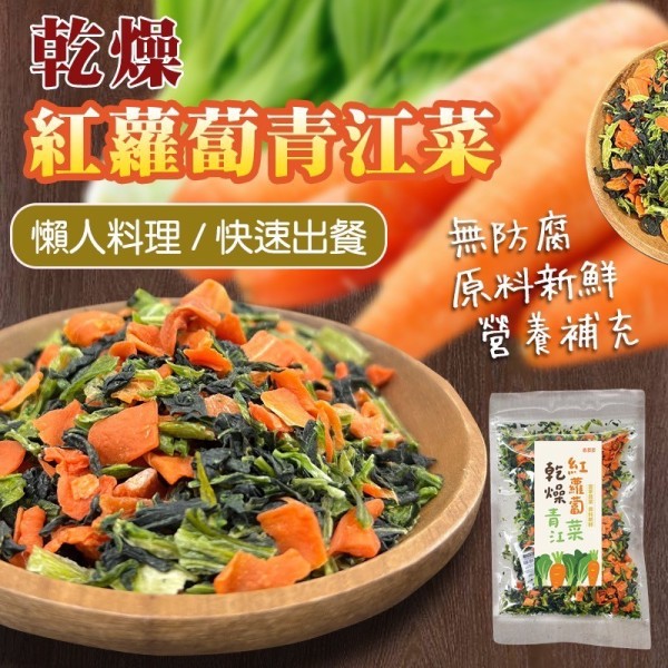 利用熱風乾燥脫水技術.將新鮮的紅蘿蔔、青江菜營養鎖住,