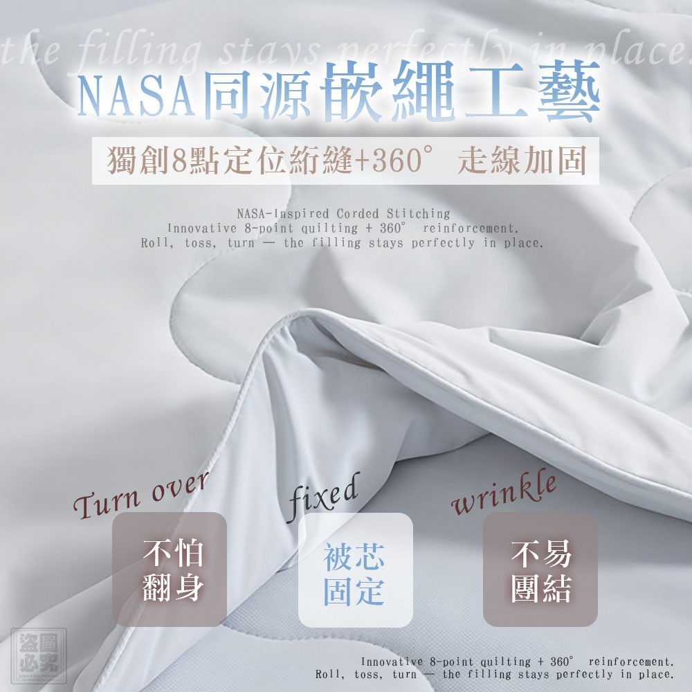 睡覺再怎麼翻、怎麼踢,被芯永遠乖乖到位不捲角!