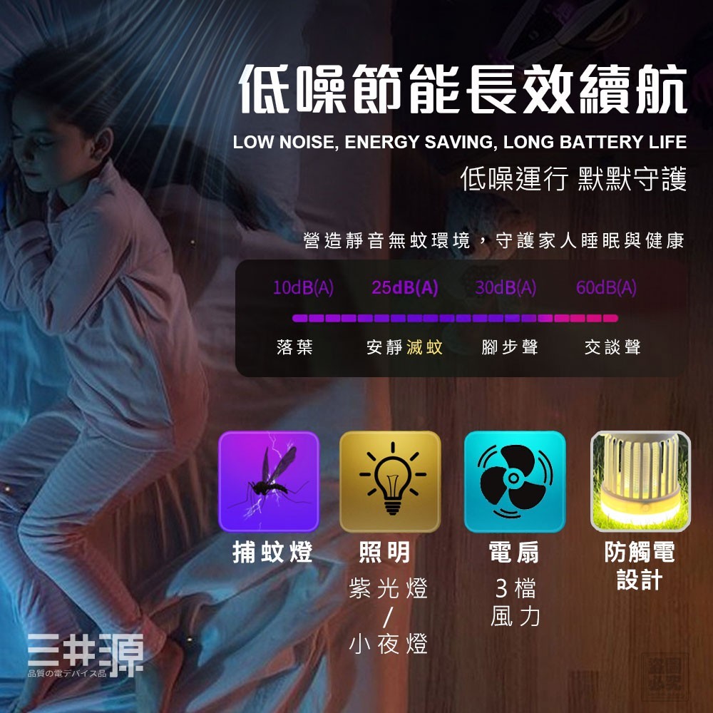 低亮省電續航持久|營造靜音無蚊環境