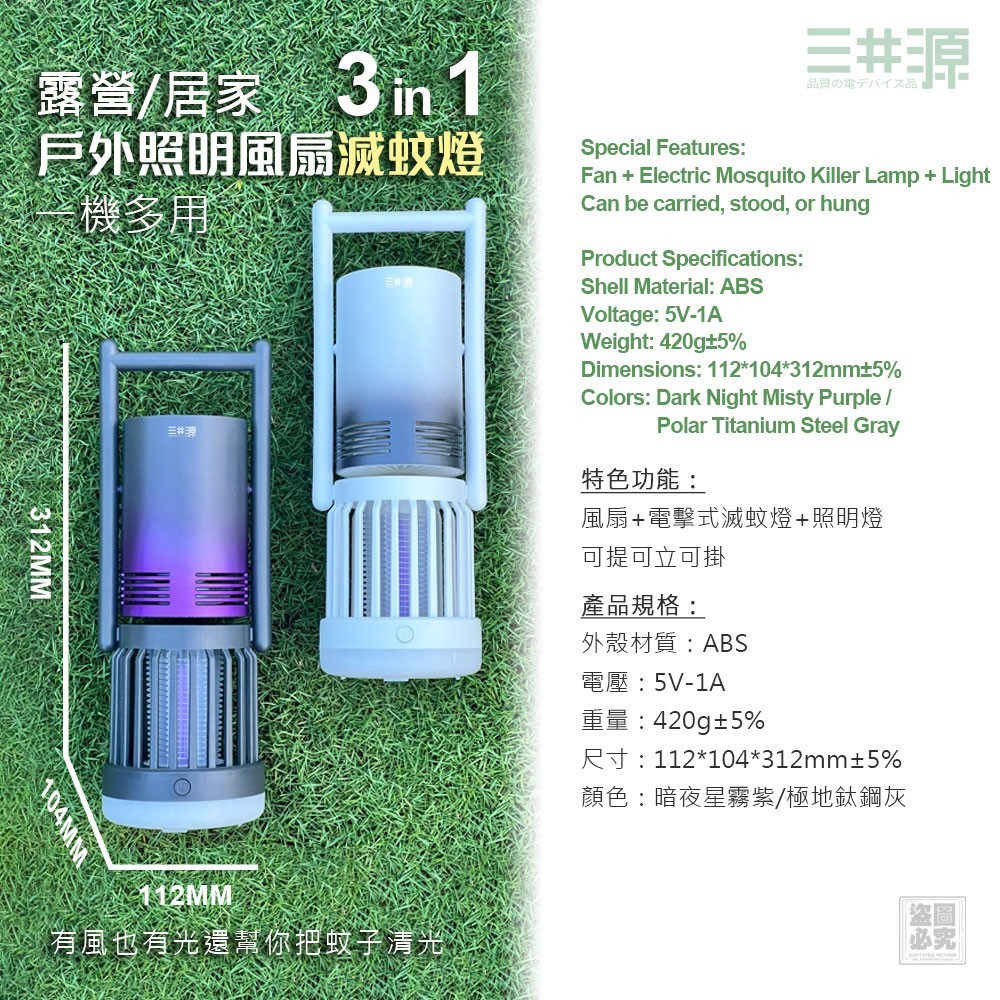 ❤️三井源-3in1戶外照明風扇滅蚊燈