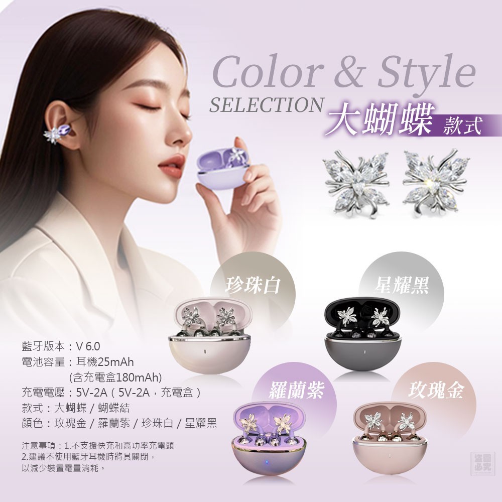❤️自帶仙氣 蝴蝶耳夾藍牙耳機