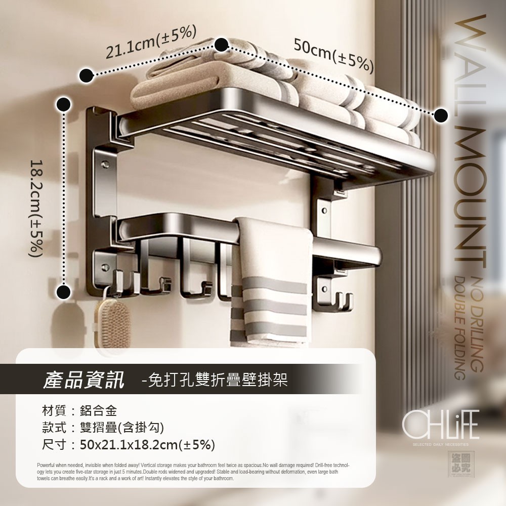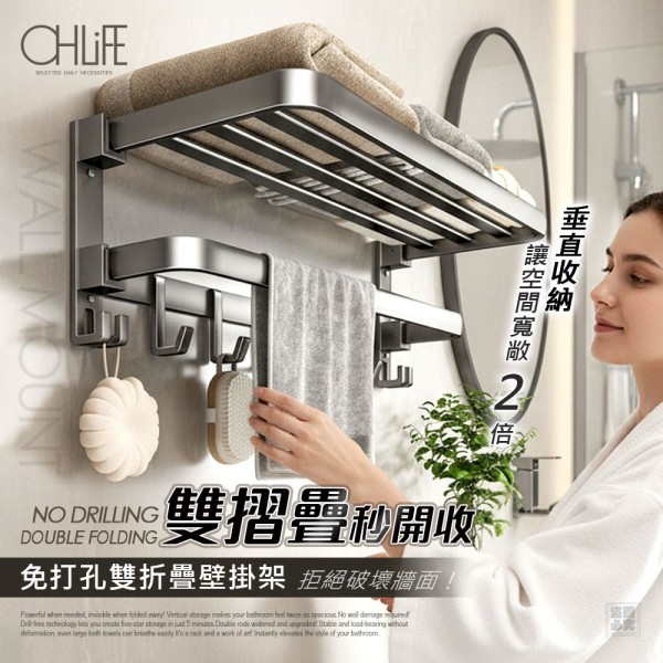 🔥OHLIFE-免打孔雙折疊式壁掛架