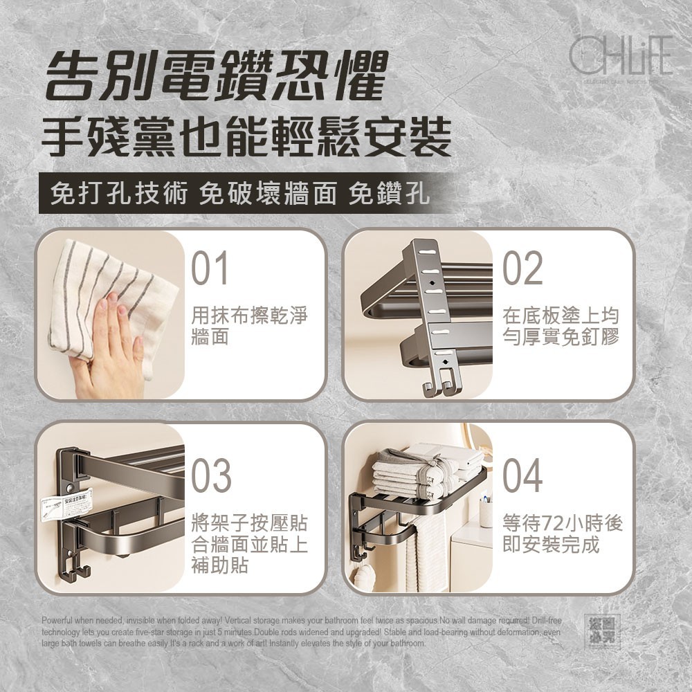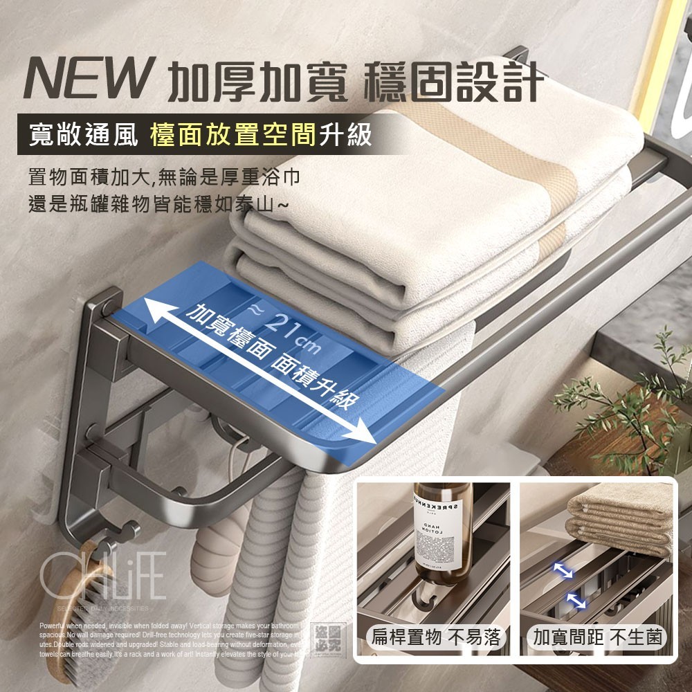 換了這款「OHLIFE-免打孔雙摺疊式壁掛架」後