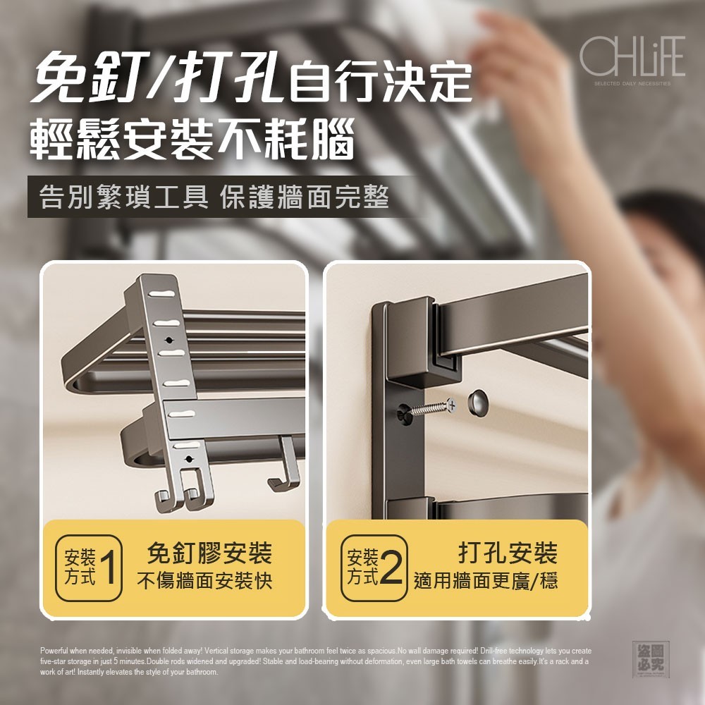 🔥 獨家雙摺疊設計,不用時可貼平牆面不占位!