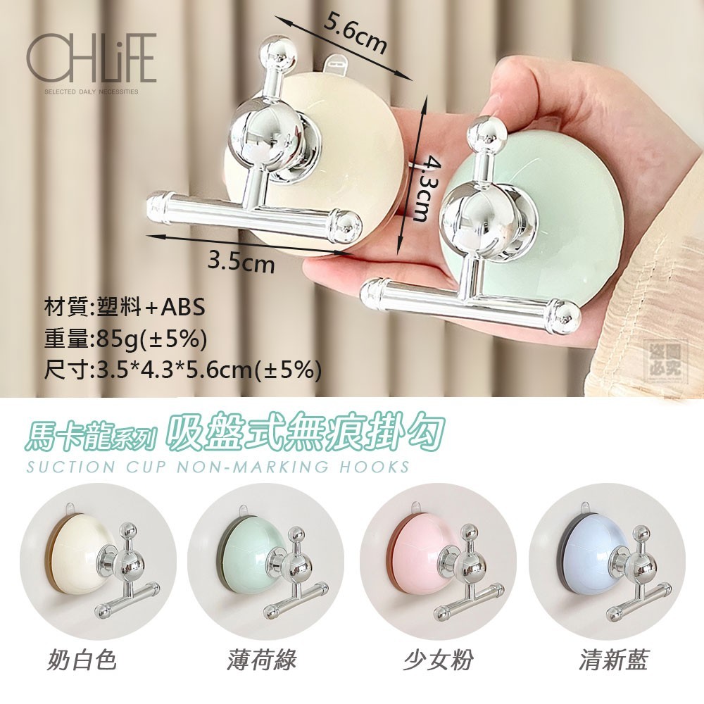 🔥OHLIFE-馬卡龍系列吸盤式無痕掛勾