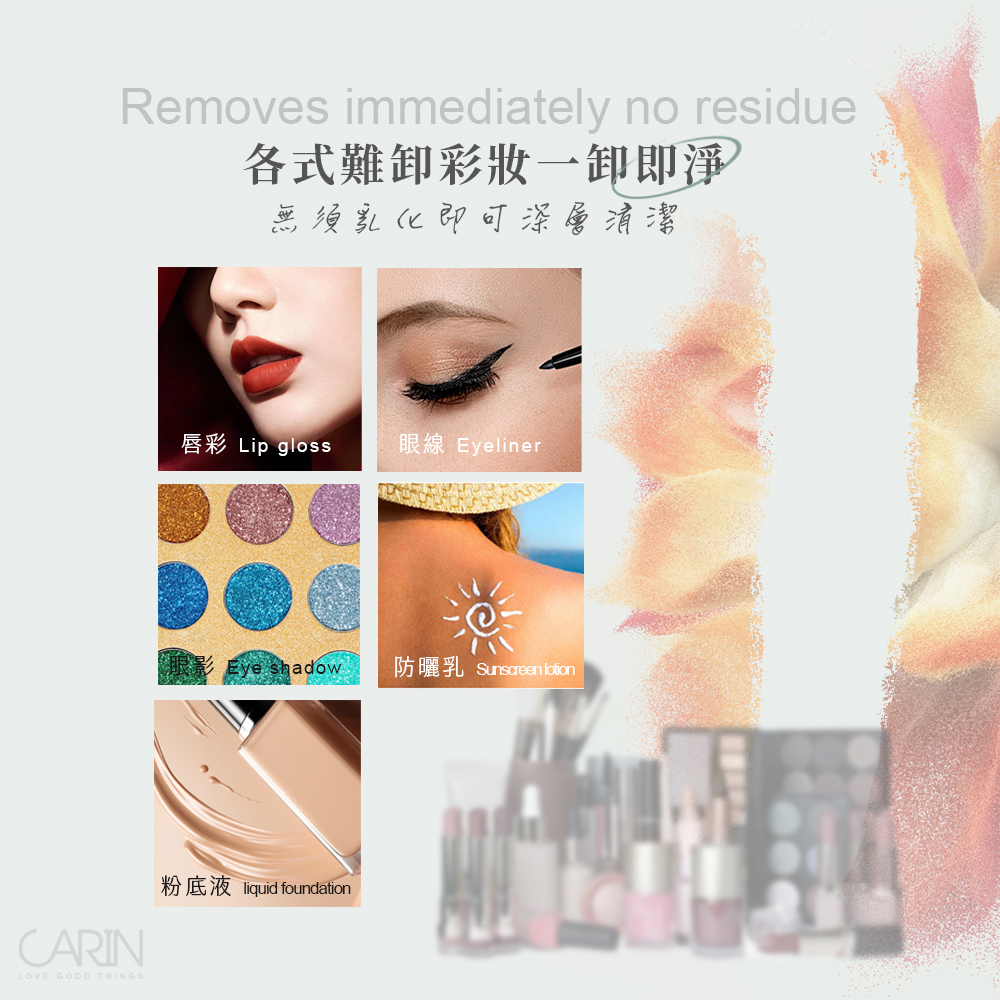 輕鬆卸除臉上持久彩妝、防曬乳、髒污及多餘油脂💪
