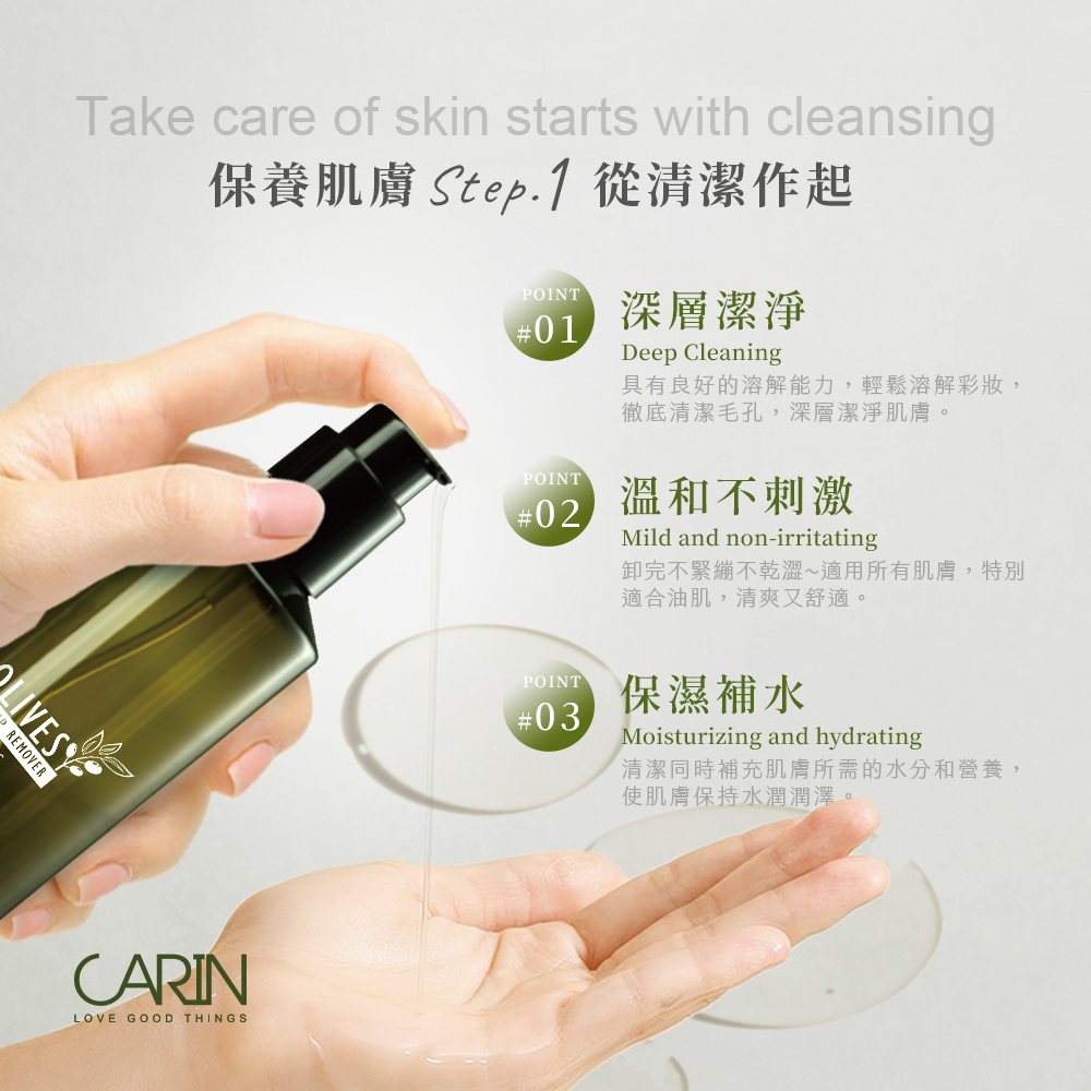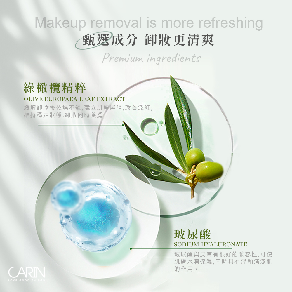 溫和帶走面臉上髒污垢及妝容,加上天然橄欖植物精華,