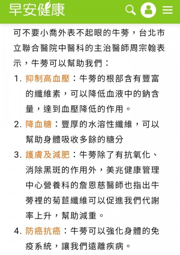 以下牛蒡功效取自文獻記載