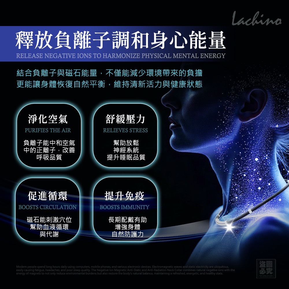 ❤️Lachino 負離子磁石防靜電抗輻射頸環