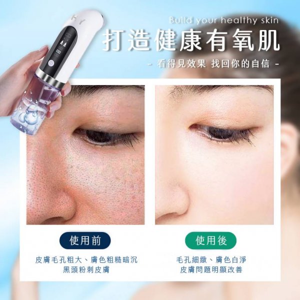 清潔: 真空水溪,深層潔淨毛孔,避免毛孔粗大,阻塞長痘,粉刺導出