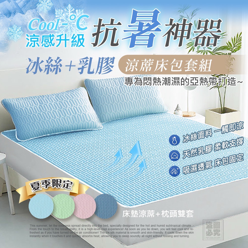 🛑 抗暑神器 冰絲乳膠涼蓆床包3件套