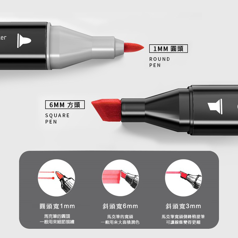 💯斜頭/圓頭雙筆頭 滿足不同繪畫需求