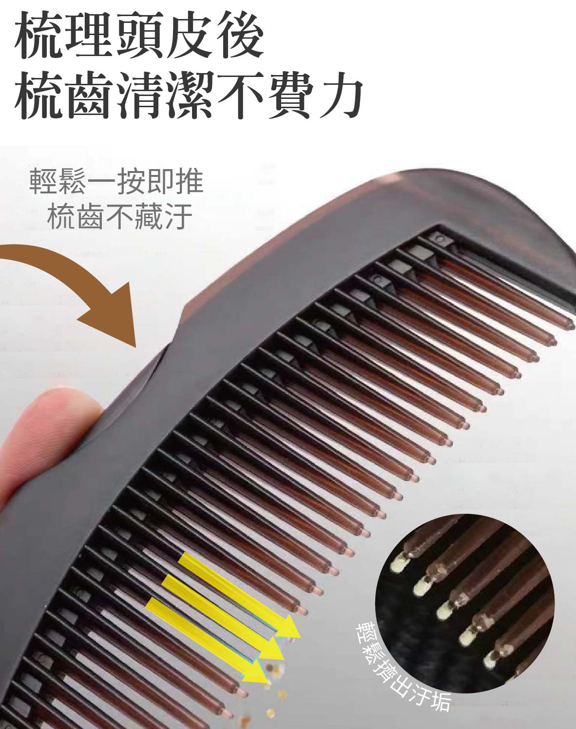 梳理頭皮後 輕鬆一按即推 梳齒不藏汙