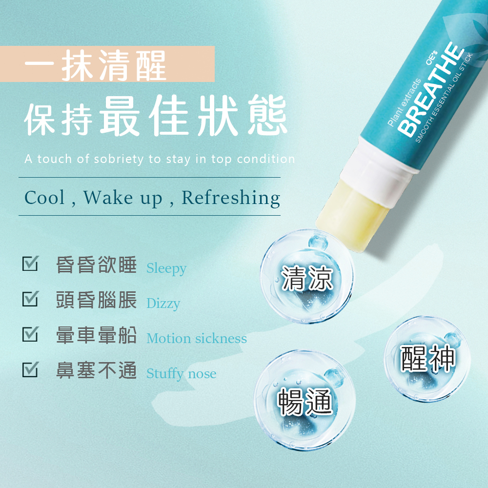 別讓呼吸影響生活品質。換季敏感、容易鼻塞的朋友,這正是您期待的解方。一塗一抹,清新沁涼直達鼻腔,瞬間喚回被困住的專注力,助您振奮精神,時刻維持最佳狀態。
